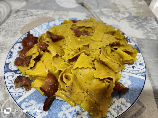 Έχοντας διαβάσει αρκετά για αυτό το κατάστημα, αποφασίσαμε να κάνουμε την κίνηση να δοκιμάσουμε. Βέβαια στην δική μας περίπτωση τα φαγητά τα παραλάβαμε οι ίδιοι σε πακέτο αφού πήγαμε στο μαγαζί διότι θέλαμε να δούμε και τον χώρο. Το μαγαζί είναι όμορφο, με ορθή διακόσμηση και ευχάριστο περιβάλλον. Οι άνθρωποι που εργάζονται φορούσαν και τις στολές τους και τα γάντια τους και το σκουφάκι τους και όλα ήταν καθαρά. Ένα σημαντικό είναι ότι οτιδήποτε ετοιμάζεται, το βλέπεις μπροστά σου. Επιλέξαμε λοιπόν τα φρέσκα χειροποίητα ζυμαρικά παπαρδέλες Carbonara Originale συνοδευόμενα από μπέικον και σε πίτσα επιλέξαμε την Μαργαρίτα και την Ταρτουφάτα. Λαμβάνοντας λοιπόν υπόψιν όπως και ο ίδιος ο Σεφ μας ενημέρωσε ότι αυτά τα φαγητά είναι σημαντικό να καταναλώνονται απευθείας στο σαλόνι διότι η εν αναμονή σε συσκευασία μέχρι την κατανάλωση τους, επηρεάζει αρνητικά το αποτέλεσμα της γεύσης, εμείς τολμίσαμε να τα δοκιμάσουμε έτσι. Η εντύπωση μας λοιπόν είναι πώς τα υλικά παρασκευής ήταν αρκετά ανώτερα σε σχέση με άλλα καταστήματα από τα οποία έχουμε δοκιμάσει και κυμαίνονται σε ίδιες τιμές ή και πιο ακριβές. Οι μερίδες των ζυμαρικών ήταν 1μιση με 2 θα έλεγε κάνεις ανά άτομο που σημαίνει δεν υπήρχε "έκπτωση" στην ποσότητα. Όλα ήταν νόστιμα όπως και η ζύμη της πίτσας με σωστή ποσότητα τρούφας και σωστά ψημένη. Δεν νιώσαμε τίποτα το αρνητικό ή τύπου καούρας ενώ φάγαμε αρκετά που πιθανόν επιβεβαιώνει την ποιότητα των υλικών. Πιστεύω πως αν τα καταναλώναμε απευθείας στο μαγαζί θα ήταν ακόμα πιο απολαυστικά όλα. Επίσης λάβαμε και μια Cola Zero 1.5L δώρο ως καλή ένδειξη ευγνωμοσύνης για την παραγγελία μας. Σίγουρα θα το ξανά προτιμήσουμε το μαγαζί δοκιμάζοντας κάτι άλλο από το μενού το οποίο φαίνεται να είναι ιδιαίτερο σε σχέση με τα περισσότερα καταστήματα εκεί έξω. Συνεχίστε την καλή δουλειά και δεν θα χάσετε.