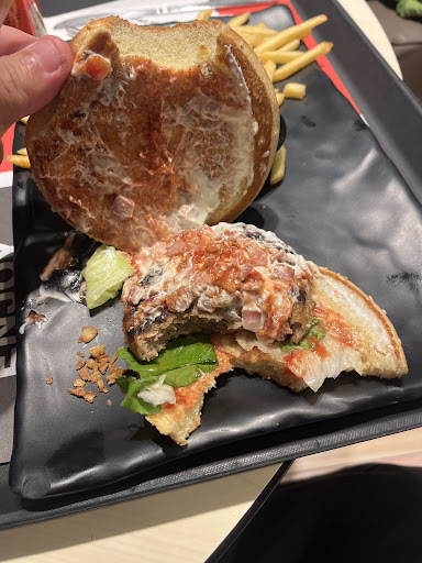Read moreΠαράγγειλα ένα τσικις συν πατατες με τσένταρ κ μπέικον. Καταρχήν δεν επιτρέπεται να δουλεύουν στην κουζινα άτομα χωρίς καπέλο η προστατευτικο στα μαλλιά και άτομα με τεράστιες γενειαδες. Είναι δυνατον να μην ελέγχουν το προσωπικό. Όπως θελει ο καθένας πηγαίνει κ δουλεύει σε εταιρίες παρασκευης τροφίμων? Που είναι οι αρμόδιοι φορείς να ελέγξουν πως ν αν τηρούνται οι ανάλογοι κανόνες. Με τα γαντια έπιαναν τα τρόφιμα καθώς και τα πανιά όπου καθάρισαν τους πάγκους. Τι είναι ο πελάτης δηλ. για να πληρώνει κ να τρώει τέτοιο φαγητό. Εκτός αυτού ο καθε ντελιβερας έμπαινε στον χωρο της κουζίνας ανενόχλητοι όπου καθόταν κ έκανε καλαμπουρι με το προσωπικό. Κανένας κανόνας υγιεινής δεν τηρείται. Κάθισα στα εξωτερικά υραπεζια σταντ όπου διαπίστωσα πως προφανώς δεν είχαν καθαριστεί καλα και η καρέκλα κολλούσε στην κυριολεξία. Ανεπίτρεπτο από μαγαζιά τέτοιας αλυσίδας. Η δε κοπέλα ετοίμασε τα πράγματα για πακέτο κ ξέχασε τα εντελώς απαραίτητα για ένα πακέτο.. .τα μαχαιροπηρουνα...θα τρώγαμε τις πατάτες...