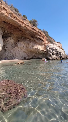 Read moreFabulous beach, with only the sounds of the waves and cicadas. Plenty of sunbeds with natural shade from trees or umbrellas. Lots of space on the sandy beach and in the caves. Even when there’s a heatwave it’s great here because of a lovely breeze and gentle waves. Good service at the beach bar too and super...