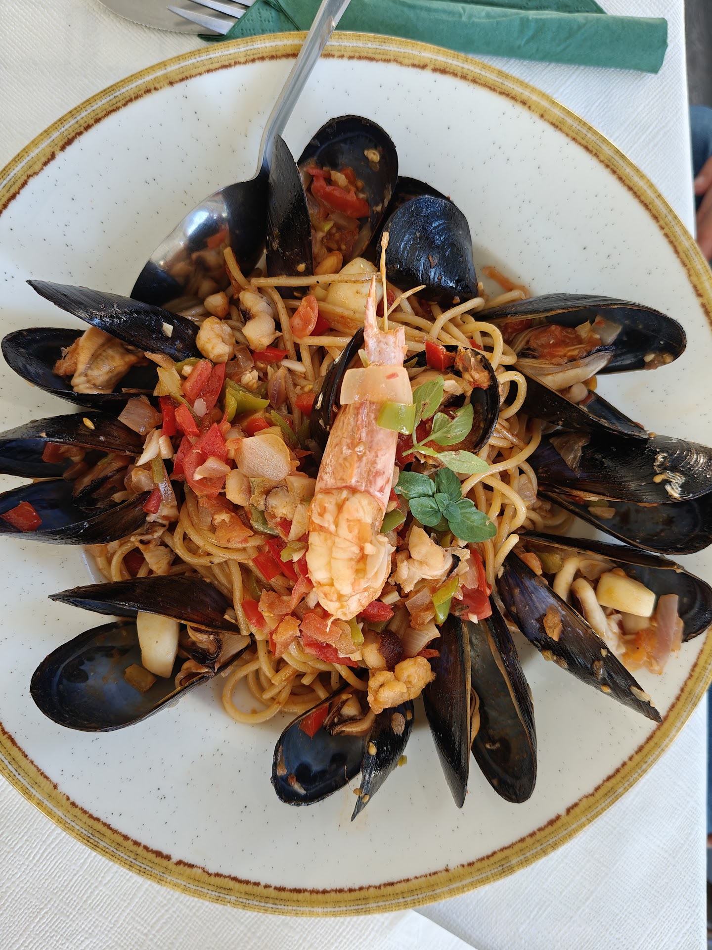 The restaurant was quite busy when we arrived. We received a warm welcome and 2 tables were put together so our party of 4 could be seated comfortably. The menu was typical of others in the town .Prices were comparable. Drinks arrived promptly. Unfortunately we had to wait considerably longer for our meals.In fact we probably waited just under an hour but we were not in any rush. One of our party had ordered a gluten free option which was welcomed however when her meal was served the waitress was sent out to retrieve the meal, as it had gone out as a "normal" option!No damage done. The replacement was served quickly. All meals were thoroughly enjoyed. Portions were just the right size for us and all tasted delicious .We saw many people ordering meat dishes served on boards however most people seemed to struggle with the huge portion size..so beware! We were served a complimentary dessert ,which was the first complimentary thing we had been offered. Happy to say they remembered the celiac and she enjoyed a...