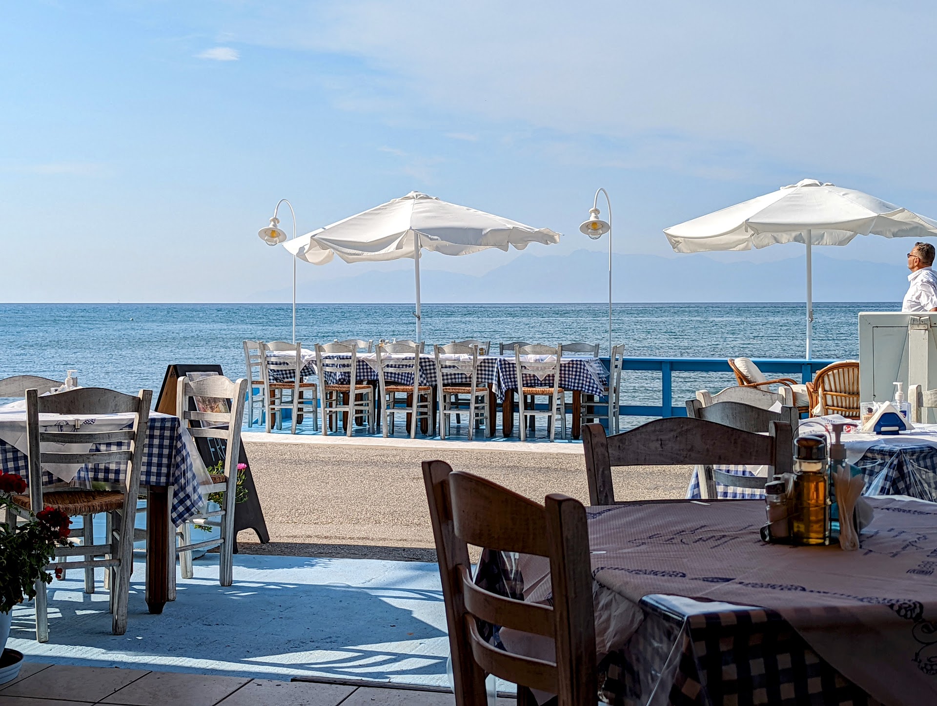 Maria (owner), her husband and chef and George (waiter, want to be comedian and dancer) are always accommodating and explain everything so well. They all make you want to just sit and relax while eating and taking in the sea views.