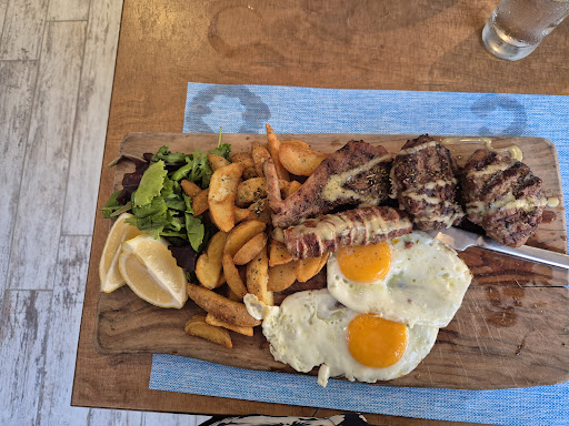 To start we ordered the mini chicken souvlaki and haloumi fries. The chicken was moist and flavourful and just big enough a portion to enjoy the flavours. The halloumi fries were crispy and delicious, they were not greasy and appeared to be oven baked. For mains we had the margarita pizza and rib steak (rib eye skeak), the pizza based seemed frozen but the toppings included seasoning and fresh tomato and cheese, i asked for mayonnaise but did not end up using it as the pizza had so much flavour. The rib steak was enjoyed rare and was beautifully soft and tender, the accompaniment of dauphinoise potatoes were cheesy, creamy and crispy but only on the edges.