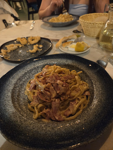 We dined here on Sunday. All of the portions were very small, and the sea bream was completely tasteless, and only a single tiny filet. The French fries were tasty, but also about ten in number. The meal side-salad was simply an afterthought of a sliced tomato and greens. My partner's spinach pie was not fresh, and not of very good taste. Things really picked up with dessert; an orange pie was well-made and tasty, but again the ice-cream single scoop which I'd ordered alongside was diminutive. The location is very fine: for the sunset views over a calm sea, and a low hanging moon reflecting on the water; the music is pleasantly very low volume. Perhaps we sadly hit a bad night - willing to try the place again simply for the...