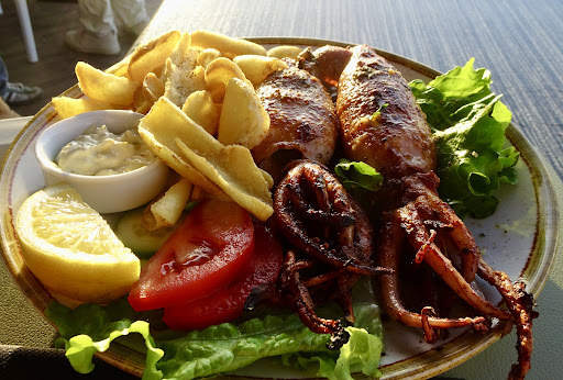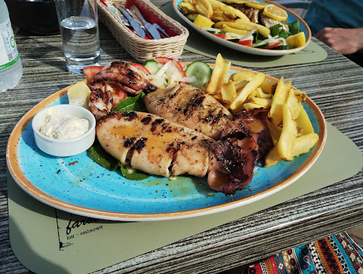 I read in the "find me glutenfree app" and in a review here that they had gluten free bread and pasta and that cross contamination wasn't a problem. After the first time we went for dinner, we decided to come back most of the time during our holidays. A total of 5 times. As a celiac, I am very thankful when a restaurant takes it seriously and more grateful if I can enjoy a variety of dishes without risk. We also noticed that we were not the only ones being regulars at the restaurant, which was also a great sign and proof of their quality food and service. If we come back to Corfu, we will try to do the same and go to Faros for lunch or dinner. Efcharistó! In the photos you can see the garlic bread (that I ordered four times haha) and the vine leaves as a starter. And then the grilled octopus, the grilled calamari, the chicken gyros and the lam exchotiko (I ordered this...