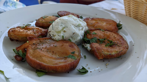 At first we got bread and butter without ordering - we thought it was a compliment from the restaurant, but then - surprise, surprise - we found it on the bill like 2€ for person. It was very arrogant and rude. Next, prices were really high. 18€ for ordinary greek burger is too much. 19€ for pork filet that - attention!!! - were tough as shoe leather is not understandable! When I complained, the waiter told me that maybe next time they should cut meat thinner. Okay, nice, but what should I do with this information and my tough peace of meat? About some good things, location was nice and at the end we were offered some...