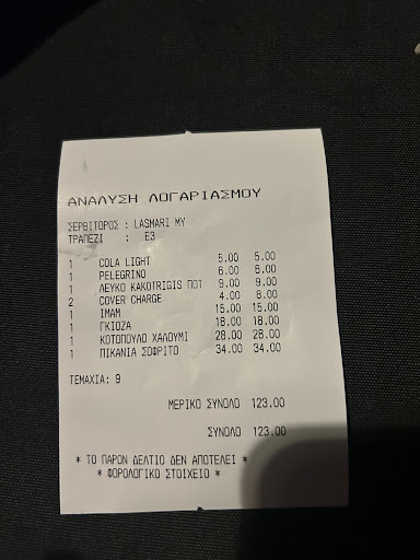 I just hate to see "unknown" charges coming later on my bill without knowing what they are. A few days after our dinner, I checked the bills and saw that there are 3x âŹ4 cover charge added to the bill. Couldn't tell what they are. Us just...