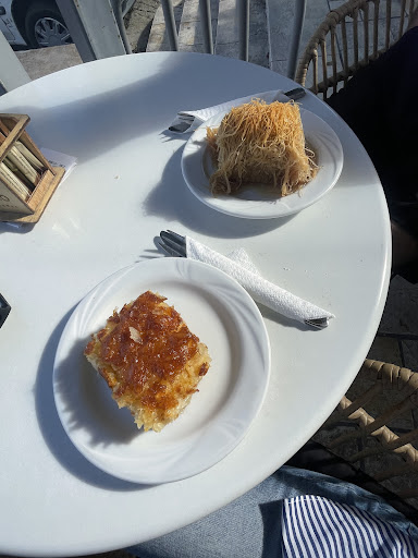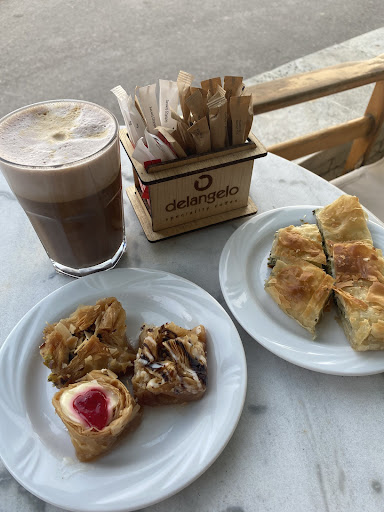 English was a little broken but we can't complain as they tried so hard it was our own fault that we went at 11:30 as there wasn't much left to chose a snack from. I was introduced to spinach and cheese pie for the first time. So tasty ,the filo was sweet balanced next to the filling . Really yummy. Then the next time we went it was just after opening , so much more choice but still the best thing to have is the spinach pie . It's a great place to watch the locals sit and chat a up a storm with espresso. Such a busy spot and the rolls was so good when we took them for a picnic on our hike up the hills...
