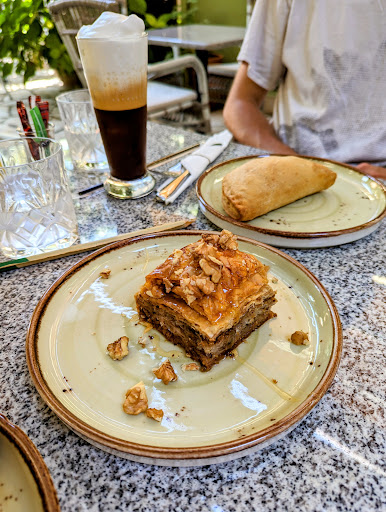 Read moreSuper cute bakery in a small town. The best little spinach pies we have tried in corfu. Coffee, ice cream and cake is fantastic too. You have to come early because things are bought/reserved quickly. The staff are super kind and there’s a beautiful shady terrace/courtyard to enjoy your treats. Can’t...