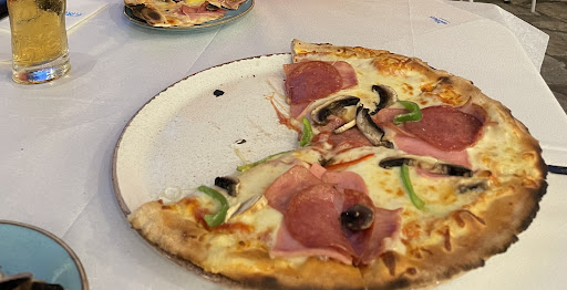Non saprei da che parte iniziare per giustificare una stella che secondo me merita il ristorante. Cena fuori a Kassiopi improvvisata all'ultimo momento perché troppo tardi per rientrare nel paese dove abbiamo il nostro alloggio e cenare ad un' ora decente dopo una giornata fra mare e visite varie. La cameriera dopo aver portato i menù ( sul quale in prima pagina troneggia un premio del 2020 vinto dallo chef per un concorso sui sapori Greci oltre confine, e che già mi prometteva bene) ci chiede cosa portare da bere, facciamo in tempo a chiedere una bottiglia di acqua naturale che lei si sposta al tavolo a fianco mentre stavo ancora pronunciando beer, e rispondeva scocciata che non poteva seguire 2 tavoli contemporaneamente. Ci ha quindi piantato in asso lasciandoci con l'ordine delle bibite a metà. Il menù è composto da molte portate e tutte con prezzi medio alti per un ristorante medio Italiano, quindi qua sono alti, da ché mi aspettavo ottimi piatti e ottimo servizio, perché mi sta bene di pagare di più se mi dai di più. Dopo 15 minuti di attesa le facciamo un cenno che saremmo pronti ad ordinare ci fa segno, sempre molto scocciata di aspettare. Abbiamo atteso almeno altri 5 minuti. Alla fine ordiniamo 2 pizze, una margherita senza mozzarella e una Greca, e un antipasto Greco. Dopo venti minuti arrivano al tavolo la pizza margherita e l'antipasto, faccio subito presente al cameriere che manca una pizza. Dopo 5 minuti torna al tavolo la ragazza che aveva preso l'ordine e ci chiede se manca qualcosa, le diciamo che manca la pizza Greca, che dopo 10 minuti arriva. Sul tavolo( piccolo per ottimizzare gli spazi) nonostante le pizze come di consueto fossero arrivate sul loro piatto nessuno aveva pensato di liberarci almeno dei 2 piatti dell'apparecchiatura iniziale. Gestire acqua, birra, vassoio dell'antipasto, le 2 pizze e un piatto di appoggio è diventato un tetris. Veniamo alle portate : le pizze erano buone, l'antipasto greco composto da 6 salse in 6 ciotole differenti ( tzatziky, melanzane, feta piccante, peperoni, un'altra credo sempre a base di feta, ed una che non ho capito, ma c'era della cipolla) , 7/8 olive e pita dove in teoria spalmare le salse! Nel vassoio 2 cucchiai dal manico molto lungo ( quelli per un barattolo di miele grande o di marmellata per intenderci) e dall'utilità dubbia: se ho 6 ciotole con 6 salse diverse o mi metti 6 cucchiaini magari piccoli ma già ciascuno nella sua ciotola o altrimenti è meglio niente, e dico questo perché se mi fai pagare tanto le accortezze devono essere un po' su tutto. Veniamo alla pita : era veramente minuscola, decisamente non adeguata per assaggiare le 6 salse, soprattutto se la portata è da condividere, è a questo punto che ho capito perché al momento dell'ordine mi aveva chiesto se volevo del pane. Cercando di evitare Miss Simpatia fermo un ragazzo al quale chiedo se mi porta del pane, mi dice di sì ma non arriva nulla. Dopo 5 minuti mi rassegno e faccio cenno alla nostra cameriera alla quale, arrivata al tavolo, chiedo del pane evidenziando che la pita non era sufficiente, al ché mi chiede che pane voglio,, io rispondo solo che volevo del pane e lei insiste: vuoi the pita bread? No I want bread, e lei what kind of bread? A quel punto leggendo lo sconcerto nel mio sguardo ha chiesto se volevo il loro pane fatto in casa, io per evitare ulteriori parole dico 'ok'. Poi, le chiedo se può portare via i due piatti inutili, ma nella stanchezza sbaglio il verbo dico Keep anziché Take e lì mi sono preso anche la lezione di inglese perché mi ha rimproverato per il verbo sbagliato, io l'ho ringraziata per la lezione mentre già si spostava ad un altro tavolo. Insomma servizio voto 0. Spazio fra i tavoli e nei tavoli voto 3. Cucina voto 7. Prezzo voto 3. Rapporto qualità/prezzo : 2. Insomma sono finito mio malgrado in posto spenna e tortura turisti. Riporto i prezzi di quanto da noi consumato margherita 11€ , pizza Greca 15€,...