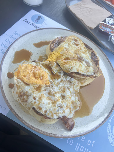 Read moreStayed at the Sea Breeze sunbeds for the whole day. We had breakfast which was very nice & decent value. Pancakes with eggs & bacon - lovely fluffy pancakes, and Greek breakfast. They have a great system for using the sunbeds, once you spend €15 per person you can use the sunbeds all day, instead of paying a fee (€8-10 depending on the place). Their system wasn't really advertised though so they should definitely put a sign saying that as it's an attractive offer imo. Service was very good across the day. We then had gyros pita for lunch. Great value at €4 each. The trick is to bring your own alcohol from the supermarket. They won't complain about it either. Ofc location on the beach is also fantastic. The sunbeds are very...