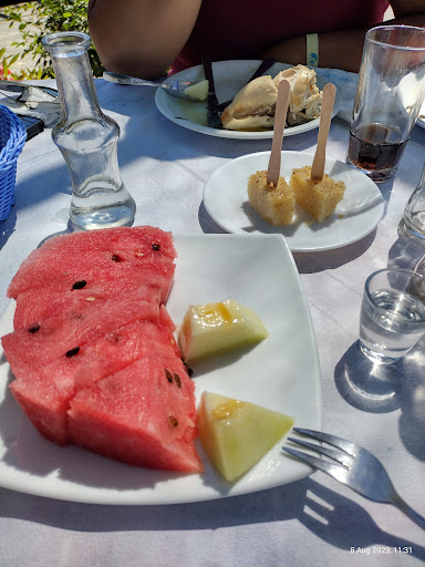 Not sure if it's regularly given but we were lucky enough to have a little dessert, melon and 6 shots of raki included free of charge.