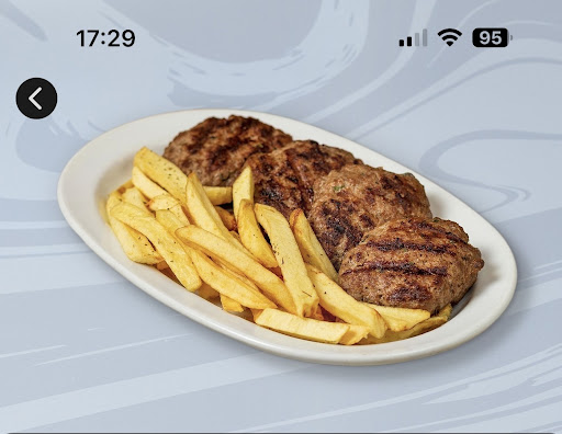 The menu clearly shows four large, grilled handmade burgers with a proper side dish, but what I got were four tiny meatballs not even the size of a quarter of a lemon wedge. For 12€, this is simply unacceptable.