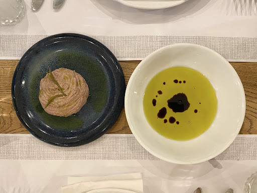 Read moreMy wife and I have been in Athens for 12 days and as avid "foodies" have sampled many delights from the greek cuisine,some good some bad but our biggest regret was not finding this excellent restaurant sooner what an absolute must visit place for seafood,I cannot recommend or praise this place enough ! There are not enough adjectives in the english language to describe the amazing food that is served here,such well presented and perfectly cooked food full of flavour and taste,my wife an I ordered 2 "starters" and 2main course,(see pics) as we were both famished and as you can see from the portion size in the picture also it turns out ambitious. after being seated, our waiter who spoke very good english thankfully,brought a lovely beetroot puree with two crisp "sails" the beetroot stiff not watery and very earthy on the pallet,next to arrive was my wife's choice, the clams with monkfish presented in a succulent sauce,the fish still slightly opaque the clams melted in our mouth,my starter was scallops, again presented with a beautiful sauce thankfully we had 3different types of bread to soak both sauces up,on our waiter Alexander's recommendation we had a bottle of house white, crisp cold and just dry enough to compliment all our dishes,our main courses arrived,again in style,my wife's a very excellent tomato,prawn and truffle risotto,the rice still stiff the prawns fat and juicy and just enough truffle so as not to overpower the flavour,my choice was the swordfish with potatoes and carrots and some sweet cherry tomatoes with a sprinkling of spring onion again the fish cooked to perfection very meaty and juicy cooked on a skewer with white onion and red an green pepper,the potatoes smashed with the carrots. Although all of our dishes had there own distinct taste they and the wine complimented each other perfectly we spent a very happy couple of hours here without feeling rushed or harried as is sometimes the case elsewhere,after ploughing our way through a plethora of taste,alexander brought us a surprise ending to our evening of a complimentary dessert of vanilla custard with a hint I think of lemoncella and a sharp not too sweet fruit coulis with burnished cream wow, thank you to all the staff and chef's for making our last evening and meal in Athens so enjoyable and a special thank you to Alexander for being so courteous and friendly towards us sorry we couldn't finish our dessert though we did try hard to. This place is only a short walk from the cultural center and I advise all the tourists that visit there to make the effort and come here im sure the staff and Alexander will make you feel as welcome as we were,and the food is as good if not better than that welcome. ...