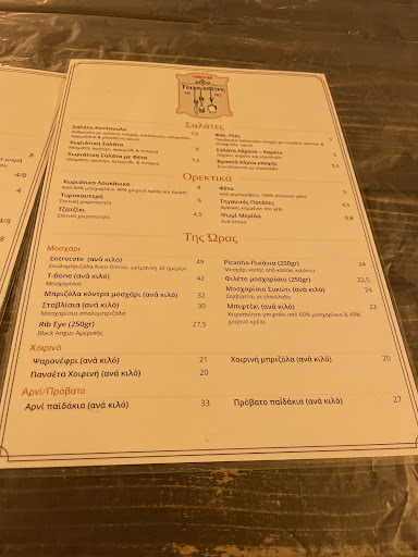 Θέλαμε εδώ και χρόνια να πάμε. Το Σάββατο που μας πέρασε λοιπόν πήγαμε αφού κλείσαμε τραπέζι. Μας υποδέχτηκαν στην είσοδο και μας οδήγησαν στο τραπέζι μας. Όλα τα παιδιά, πολύ ευγενικά και σβέλτα. Παραγγείλαμε (για 2 άτομα) ψωμί, 1 πατάτες, 1 χόρτα, 1 λουκάνικο, 1 rib eye, 1 μερίδα πανσέτες και 1 μπύρα μπουκάλι. Το ψωμί υπερβολικά πολύ (χωρίς λόγο) για 2 άτομα αλλά ωραία φρυγανισμένο. Λάδι πάνω του ελάχιστο όμως. Σταγόνες μιλάμε. Οι πατάτες πάρα πολύ νόστιμες και μεγαλη μερίδα. Εντάξει βέβαια, μεγαλη μερίδα με αντιστοίχως μεγάλη τιμή. Τα χόρτα μέτρια (ραδίκια σπαρτά, άρα λογικό), αλλά είχαν και πολύ νερό κρατήσει μέσα. Το λάδι τους πάλι ελάχιστο. Ελάχιστο όμως. Το λουκάνικο τρομερό, πολύ καλά ψημένο και τεράστιο. Δεν είχε συνοδευτικά αλλά άξιζε τα € του. Οι πανσέτες πολύ νόστιμες. Βέβαια, δυστυχώς για κάποιο λόγο οι άκρες τους είχαν γίνει κάρβουνο. Μόνο οι ακρούλες. Πάντως τρωγοντουσαν ευχάριστα,στο σύνολό τους. Και φτάνουμε στο rib eye. Όταν χρεώνεις 27,5€ για ένα rib eye 250gr, το οποίο το δηλωνουν ως black angus, περιμένεις να φας κάτι αντίστοιχο. Ή τουλάχιστον να έχει και κάποιο συνοδευτικό. Δεν μας ρωτησαν πως το θέλαμε ψημένο και εμείς φυσικά ξεχάσαμε να τους πούμε. Αποτέλεσμα, ήρθε ψημένο medium rare. Εντάξει, θα το παλέψουμε λέμε. Ίνες, ίνες, ίνες. Κυρίως στα διαχωριστικά των κομματιών. Στο σύνολό του, προς το σκληρό. Φανταζου να ήταν ψημένο και medium. Όσα κομμάτια τρωγόντουσαν ευκολότερα, αρκετά νόστιμα. Πάντως, σχετικά και με την τιμή του, δεν μου θύμισε τίποτα σχετικά με άλλα rib eye αντίστοιχης τιμής που έχω φάει σε άλλα γνωστότερα εστιατόρια. Ζητήσαμε λογαριασμό. Δεν έφεραν κανένα κέρασμα. Ούτε ένα λουκούμι που λέει ο λόγος. Άποψή μου, οτι αυτό δεν είναι σωστό. Δεν περίμενα να μου φέρουν κάτι τρομερό και μάλιστα συνήθως δεν τρώω από αυτά που φέρνουν, αλλά για την τιμή που πληρώσαμε, περίμενα ένα κέρασμα, εστω και ένα σφηνάκι. Τιμή, 70€ τα 2 άτομα. Δεν λυπάμαι τα λεφτά για το φαγητό. Ποτέ. Αλλά όταν πληρωνω 35€/άτομο, έχω και τις ανάλογες απαιτήσεις. Δυστυχώς η συγκεκριμενη ταβέρνα, δεν τις συνάντησε. Διαβάζω ολες τις τέλειες κριτικές που κάνουν και αναρωτιέμαι, αν αυτό έτυχε σε εμάς μόνο ή αν απλά γράφουν κριτικές κυρίως όσοι έμειναν ευχαριστημένοι. Εγώ πάντως παραθετω τη δική μου εμπειρία. Κακό σκοπό δεν έχω. Πιο πολύ θέλω, αν το διαβάζουν από την επιχείρηση και αν τους ενδιαφέρει, να κάνουν τις αντίστοιχες διορθώσεις ώστε οι παρεχόμενες υπηρεσίες τους να συναντήσουν και...