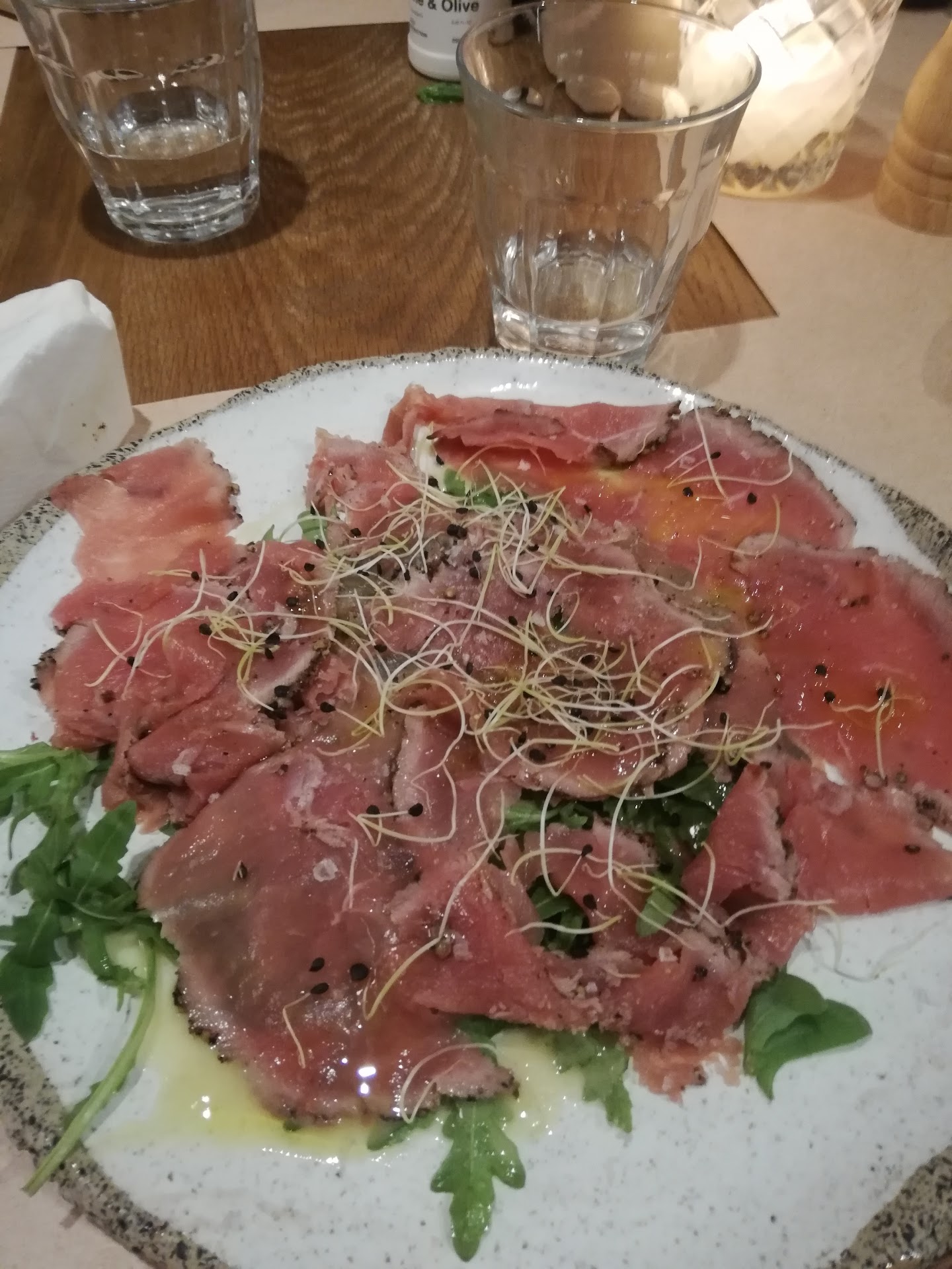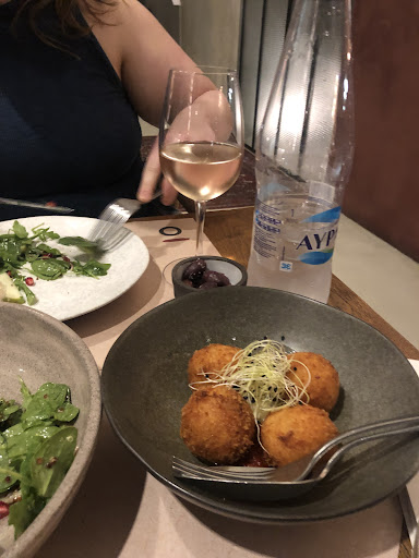 4–🍝🍷Traditional Italian pizza, not bad (burrata pizza was underwhelming—too limp at the center for my taste) but the aronccini was great and we will return for the spinach walnut apple and pomegranate salad with lemon dressing! Sorbet is delicious as well and very cheap (€2). Cocktails look great and we will try next time