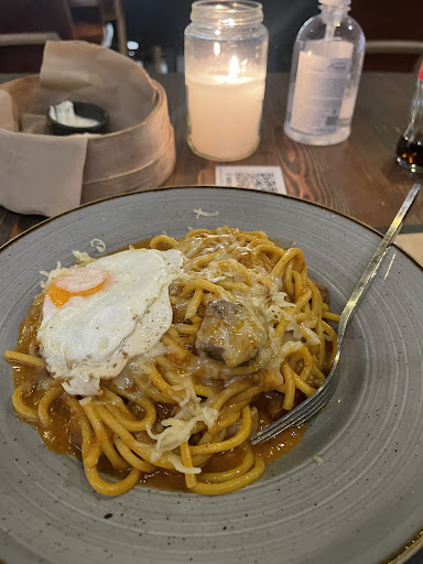 Read moreBiggest dish of pasta seen lately. Had spaghetti with beef ragù and fried egg on top. Ragù in this case where medium chunks Of beef, like from beef casserole- kokkinistó in Greek. Had to take the other half home as I was defeated by the dish portion. Equally important to me was the nice and clean ambience, spacious eating area, quick and polite service and nice background music. Here you can have a nice conversation without shouting to each other. Considering the whole I think that the price was right. Probably this place is a rarity,...