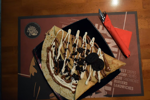 Read moreA crèperie in a popular area which doesn't let its location carry its profits. Rather they use good quality materials and their service is fast. True to their name, they don't go cheap on the batter!! You can pick from the ingredients they have to go in your crèpe or you can pick one of their suggestions (which are named after rock bands) and customize them if you like. There is seating available both inside...