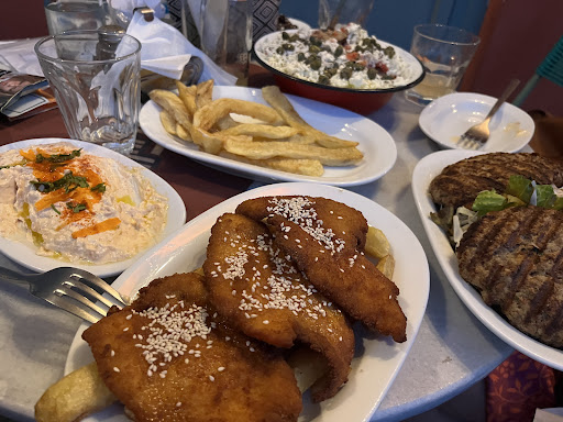 Read moreFood for Greeks is not only a way to survive is more a way to communicate. A cozy, warm and friendly environment with tasteful food in decent prices. quality&quantity: fresh ingredients and well cooked dishes. Portions are not so big, you can call it big tapas. Dishes include also potatoes baked or fried. price: decent prices, dishes from 4-5 euro and beer from 3€. For one cheese pie with honey, cheese balls, kontosouvli kotopoulo (chicken), pork in the pan and 5 beers (if I am not mistaken), we paid 37€. Unfortunately the most expensive was beer. service: fast, polite, flexible and friendly. If you go after 21:30 is usually...