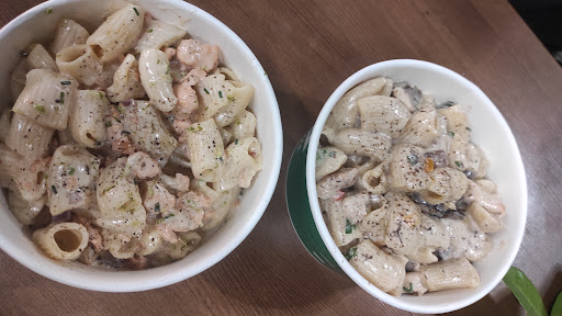 Read moreΕπιλέξαμε το συγκεκριμένο σημείο για φαγητό με τον σύντροφό μου καθώς είχα διαβάσει πάρα πολύ καλές κριτικές . Η απόφαση μας δικαίωσε καθώς η εξυπηρέτηση ήταν γρήγορη και ευγενική και το φαγητό πολύ νόστιμο. Σαν ατμόσφαιρα δεν είναι κάτι το ιδιαίτερο. Βρίσκεται σε πολυσύχναστο δρόμο του Περιστερίου. Έχει λίγα τραπεζάκια στον εξωτερικό χώρο που μπορείς να κάτσεις και να απολαύσεις το γεύμα σου. Παραγγείλαμε τα ζυμαρικά με τα μανιτάρια-κοτόπουλο και αυτά με τον σολομό. Ως σημείωση για τα 4 αστέρια είναι ότι ζήτησα fusili ζυμαρικά και μου δώσανε rigatoni . Ακόμα κι αν είχε τελειώσει το ένα είδος έπρεπε να με ενημερώσουν . Και επιπλέον θα ήταν καλό να βάζουν περισσότερη ποσότητα από κοτόπουλο και σολομό γιατι πραγματικά η ποσότητα ήταν ελάχιστη. Ψάχναμε τα υλικά με το "κυάλι". Γενικά όμως σαν σύνολο μας άρεσε το προτείνω και θα ξαναπήγαινα να φάω αν ήθελα κάτι οικονομικό...