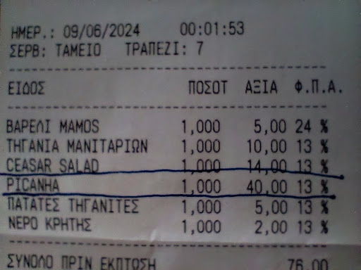 The restaurant is conveniently located just 10 minutes from the port on a busy street that surprisingly has little foot traffic, providing a more relaxed atmosphere compared to the bustling city of Athens. The area around the restaurant is notably cleaner as well. Payment was quick and efficient, completed within 2 minutes.