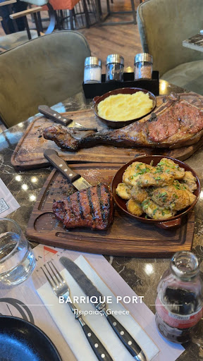 Barrique Port delivered an exceptional dining experience with their perfectly cooked Black Angus steak, tailored precisely to my preferences. The recommended wines, priced at €8.50, were an exquisite complement to the meal. The steak itself, costing €40, offered a commendable value and quality ratio, scoring a solid 4.8/5, which is slightly above the average for Greek prices.