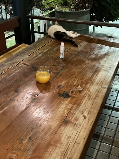 Feeding the cats is not a crime, but this is not the case here. There is a lady, who really has a routine on feeding the STRAY cats right outside of the restaurant. Me and my family, we have absolutely no problem with animals, we own a dog ourselves and we know what the law is saying about feeding animals on the streets. We eat often on this restaurant, despite the fact that we have caught some of the stuff ignoring us on purpose, the owner is a really nice guy and the food is always delicious. Back to the problem I mentioned above with the cats.According to the law it’s forbidden to feed animals on the street unless you legally own them, they are chipped, clean, vaccinated etc…Those cats who get fed daily multiple times a day are stray, they walk inside the restaurant, siting on the tables, the place where we eat, like they walk freely on the garbages on the road.This is not the most pleasant thing to see in a restaurant.Its not hygienic. Please if you want to feed those cats and have them legally walking around your restaurant, at least own them as the law mentions.Be responsible for the animals you are feeding and for the people who eat at your restaurant. If what I said above sounds like an overreaction, search about it on the internet. Animal organisations are saying exactly what I said above.Be a...