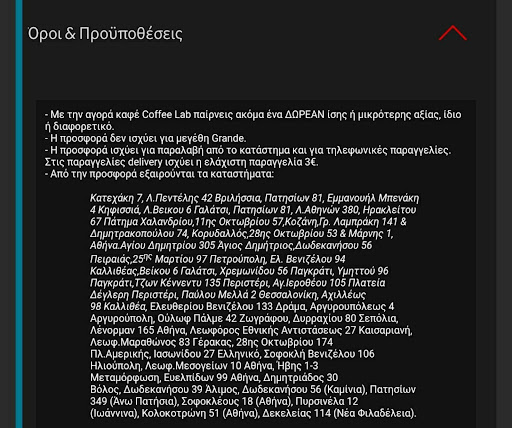 Edit (15/2/2021, 6:00 μ.μ): Eπισκέφθηκα και 2ο κατάστημα στον Πειραια για να προσπαθησω να δοσω μια δευτερη ευκαιρια για την δικαιολογια που μου απαντησατε και (ευτηχως που ρωτησα πριν παραγγειλω) δεν ισχυει ουτε εκει η προσφορα (???). Στην ουσια μιλάτε για κατι που δεν υπάρχει σε 2 απο τα 3 καταστήματα σας? Το θεωρειται σοβαρο αυτο ? Επισης ειναι υπευθηνη απαντηση το να ριχνετε ευθεινες στον παροχο, σαν να μιλαμε με καποιο 10χρονο παιδι δημοτικου, οτι αυτοι δεν ενημερωσαν ? Για μενα οσο καλο καφε και να χει ενα καταστημα η εξυπηρετηση (υπευθηνοτητα) ειναι τα 4 απο τα 5 αστερια και εσεις μολις τα...