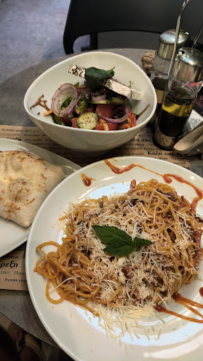 Read moreNella mia esplorazione del Pireo, questo locale è uno dei primi ad avermi intrigato, la facciata e la struttura dell'entrata sono particolari e accattivanti. La vetrina è una piacevole tentazione, anche se da Celiaco tale rimane, quello che però mi ha sorpreso è il caffè non completamente italiano, ma incredibilmente simile per gli standard della Grecia. Ci hanno inoltre spiegato come una volta avessero provato con quello italiano, ma non avesse riscosso troppo successo per gusti differenti. La parte che mi è piaciuta di più è l' ambiente interno, semplice, ma pulito e accogliente, sembra quasi di entrare in un angolino d'Italia dimenticati li davanti al porto.