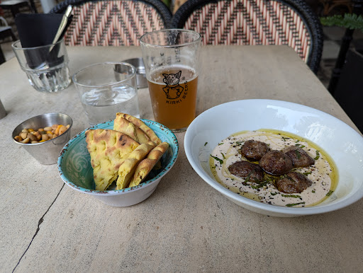 I have to give 5 stars even though there are some minor issues. First of all we have to keep in mind the location. This place is by far the best for what it offers in the nearby area. Service is excellent, staff is very polite and helpful. Parking nearby is very easy. If it was located in another more competitive area such as the center of Athens it would be average but for Piraeus this place really stands out. Prices are good but the menu could be enriched with more options. Wine list is limited and this is the case with dishes also. We were told that there will be a brunch option added soon so that is definitely something positive. There are some tables on the sidewalk which i would avoid sitting since there are all sorts of people passing by. In conclusion. It's a nice place with lots of thoughtful touches but it still has a lot of room for improvement. Of course as I said it really is the best option in the center of Piraeus for a drink or a...