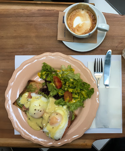 Friendly atmosphere and nice vibe. The vintage decor takes you back some years! Very cozy to sit and enjoy the music that seems carefully selected and with taking care off the sound quality. Coming to the food now. Since I went there for brunch, I ordered poached eggs on bread with avocado paste and smoked salmon. It comes with green salad on the side. I can say I enjoyed it but it really was quite salty for my taste, taking in consideration that I like salty food. It could have been spotless if not with so much salt. The single variety cappuccino that I ordered was good but not something special. I would give 4 stars but I give 2 because of one thing, and that’s allowing smoking indoors. Starting to smell cigarette smoke and seeing the waiter smoking just by the bar, made me and my wife leave earlier than...