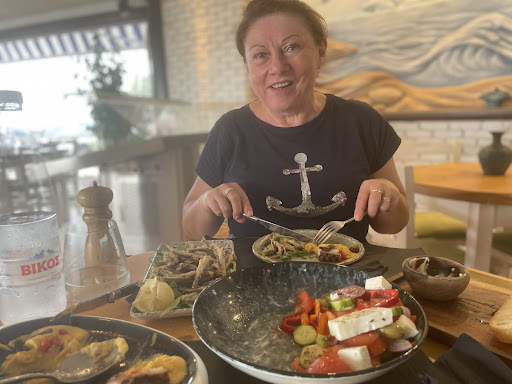 Read moreWe found this on a whim by our Airbnb in Piraeus and what a great place! We ordered greek salad, salmon ravioli, and calamari. THEN they gave us a special treat and brought out deep fried sardines (Maybe they were sardines, but it was a daily catch). They were different for us, but good! Then, just when I thought we couldn't eat anymore, he brought out a dessert made from his mom's home recipe. I don't even know what it was, but it was delicious and I ate the whole thing! They were so warm and welcoming. Too bad we found them on our last night, because I would have definitely went back! Oh yeah, also a beautiful spot and cute restaurant. ALL of this for 42 Euros. We were...