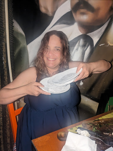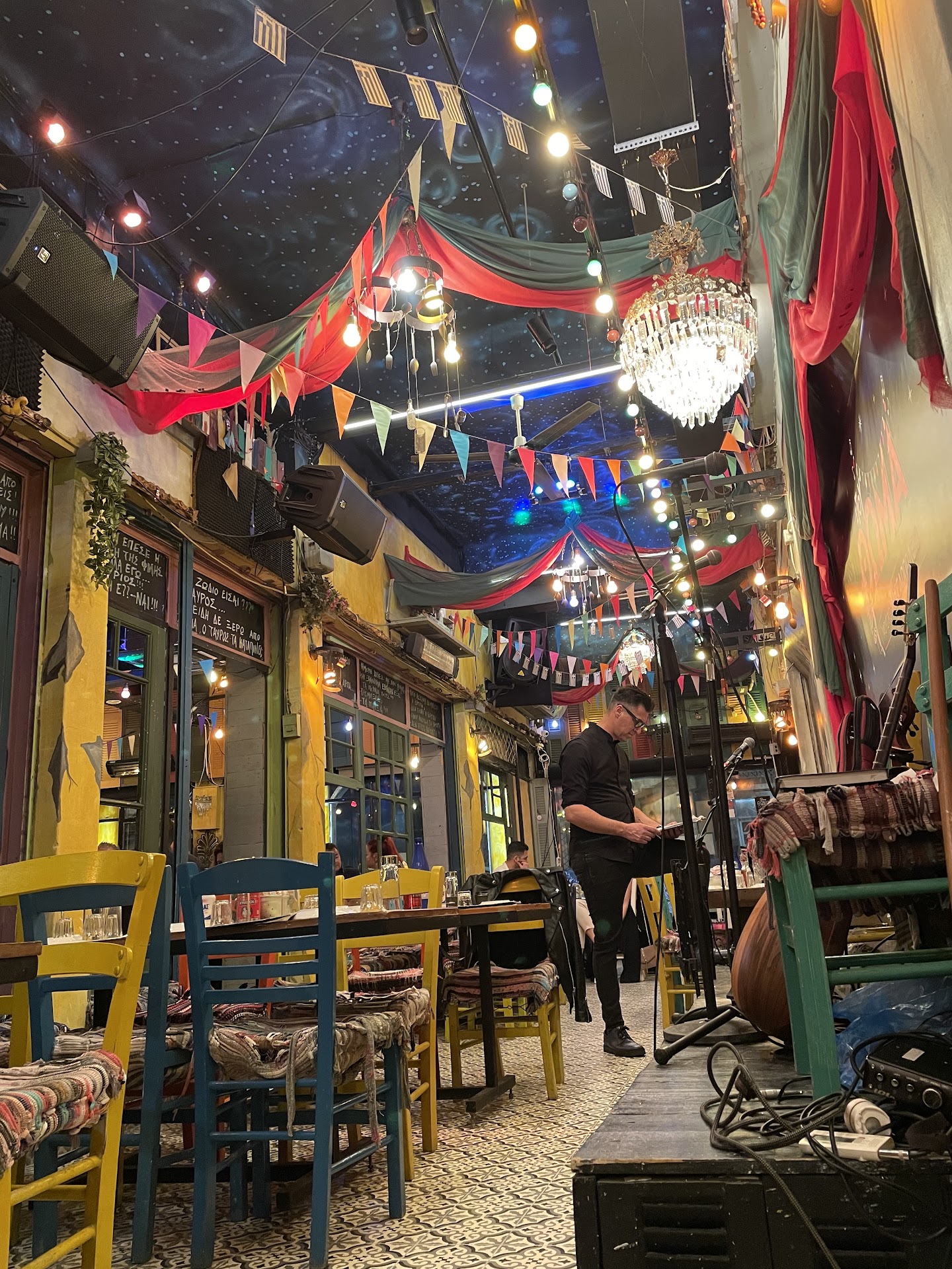 Read moreΛοιπόν θα προσπαθήσω να σας κατατοπίσω για αυτό το μαγαζί όσο καλύτερα μπορώ. Γενικά βρίσκεται σε ένα καλό σημείο για πρόσβαση στον Πειραιά και με γενική άνεση για πάρκινγκ στα γύρω στενά. Απ έξω δεν σε ελκυει να μπεις αλλά μέσα έχει πολύ όμορφες πτυχές όπως τα ανέκδοτα στους τοίχους και τις πολύ καλές αερογραφιες με ξεχωριστή αυτή της Μελίνας.. Το μαγαζί αδίκως είναι χωρισμένο στα δύο. Αυτοί που κάθονται γύρω από την ορχήστρα οι τυχεροί και οι άλλοι στον δίπλα χώρο που εντάξει δεν μας πείραξε αλλά πέφτεις όταν δεν κάθεσαι μέσα που γίνεται το γλέντι. Η ορχήστρα.... Ωραίες φωνές και καλό ρεπερτόριο. Η μουσική πολύ δυνατή αλλά σε ρεμπεταδικο μην περιμένετε να λύσετε το κυπριακό... Εξαερισμός δεν υπήρχε... Αλλά αν σταματούσαν να καπνίζουν όλοι λες και δεν υπάρχει αύριο θα πήγαινε καλύτερα το πράγμα. Πάντως τα ρούχα σας μετά θα τα πάτε απευθείας στα άπλυτα ή έξω στο μπαλκόνι ή πάντως μακριά γιατί θα βρωμάνε τσιγαριλα. Το μενού... Οι τιμές του είναι περίεργες κάποια πιάτα είναι πιο ακριβά απ όσο πρέπει κάποια άλλα πιο φθηνά. Εδώ όμως κρύβεται το μυστικό αφού το μαγαζί παίζει με την ποσότητα η οποία είναι επιεικώς απαράδεκτη. Δεν μπορείς να ζητάς ένα πιάτο των 8.5 ευρώ σις κοτόπουλο 2 σούβλες;;;; και να σου έρχεται ένα καλαμάκι κοτόπουλο 200 gr γεμάτο με πατάτες και πίτες κομμένες. Παράγγειλα κρέας θέλω κρέας τι πράγμα είναι αυτό πια όλοι βάζουν μια σπιθαμή κρέας και 2 κιλά υδατάνθρακες από δίπλα. Αυτό λοιπόν γίνεται σε όλα τα πιάτα χωρίς εξαίρεση ακόμα και στην ποικιλία των 34 ευρώ παρακαλώ πολύ. Θετικά σχόλια δίνω στο κοντοσουβλι ήταν νόστιμο και ευτυχώς ήρθε μόνο του χωρίς μπλιμπλικια γύρω γύρω απλά ήταν για δείγμα. Γενικά όλα τα πιάτα ήταν για δείγμα εκτός της σαλάτας. Το κρασί... Ημιγλυκο κόκκινο πολύ γλυκό αλλά καλό το δε λευκό αραιωμένο και αδιάφορο. Αν δεν πάρετε κρασί καλύτερα πάρτε ουίσκι γιατί τα άλλα ποτά δεν συμφέρουν οικονομικά. 6 άτομα στα 100 ευρώ αν δεν τρώγαμε όλο το ψωμί όλες τις πατάτες και πίτες θα φεύγαμε πεινασμένοι... Αφού μετά από 2 ώρες χτυπησαμε σουβλάκια να συνέλθουμε. Κέφι υπάρχει πολύ στο μαγαζί δεν μαζεύει ιδιαίτερα μικρές ηλικίες τύπου 25 με 35 τουλάχιστον έτσι έχω δει από τις φορές που έχω πάει αλλά αν είσαι ελεύθερος ή ελεύθερη δοκίμασε την τύχη σου μπορεί να σου χαμογελάσει.. Τώρα θέμα ευγένειας προσωπικού δεν παρατήρησα τίποτα ενοχλητικό ή απρεπες προς τους πελάτες και εμάς.. Οι κοπέλες σερβιτόρες τρέχουν και δεν φτάνουν αυτή δε που μας εξυπηρετούσε ήταν ιδιαίτερα εξυπηρετική... Στο μαγαζί θα ξαναπήγαινα γιατί έχει μια παλαιάς κοπής αισθητική, είναι κεφάτο και αν ήμασταν λιγότεροι ίσως τρώγαμε καλύτερα με πιο σωστή παραγγελία γνωρίζοντας πια όλα τα πιάτα και επιλέγοντας τα σωστά την επόμενη φορά. Το μαγαζί από την μεριά του καλό είναι να διορθώσει λίγο τον κατάλογο... 6 διαφορετικά λουκάνικα;;;; Σις κοτόπουλο;; ψάξε ψάξε δεν θα το βρεις Σπαθατο χοιρινό;;;; κοροϊδία... Σαγανάκι του Θωμά;;;; τι ήταν αυτό; Σαλάτα μανιτάρια τι ονομασία είναι αυτή; Η σωστή ονομασία είναι ψητά λαχανικά Το πιάτο χαλουμι ψητό;;; πανάκριβο για το δείγμα που μας φέρατε... Κτλ κτλ να μην επεκταθώ άλλο... Βαρέθηκα να πηγαίνω σε μαγαζιά που τα ακουμπάω και δεν τρώω καλά λόγω του ότι όλα τα θυσιάζουν στο βωμό του κέρδους. Απόδειξη μηδέν άφαντη.... Απορώ δεν φοβούνται... Τα ίδια παντελακη μου τα ίδια παντελή μου. Τέλος... Χρέωση για την μουσική;;;;;;; το ήξερα αλλά ρε φίλε χρέ