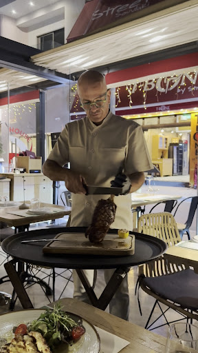 Read moreΠήγαμε για φαγητό Παρασκευή με 2 συνεργάτες απο το εξωτερικό. το μαγαζί αδειο , θερμοκρασία 40C, οι ανεμιστήρες φυσούσαν ζεστό αέρα. το μαγαζί δεν διαθέτει εσωτερικό κλιματιζόμενο χώρο. Υπο αυτές τις συνθήκες περιμένεις μια καλή εξυπηρέτηση. Ο μετρ/σερβιτόρος έρχεται στο τραπέζι και ρωτάει αν έχουμε ξαναφάει εκει οπου και κάνει μια ανάλυση του μενου για 10 λεπτά με τις προτάσεις του. Παραμένουμε η μόνη παρέα στο μαγαζί. Παραγγέλνουμε μπύρες ποτήρι, ένα μέγεθος μικρό, 5.50 το ποτήρι (θα περίμενα να ειναι μεγάλο μέγεθος για αυτή την τιμή). Εχουμε αποφασίσει τι θέλουμε να παραγγείλουμε και ζητάω να παραγγείλω. Ο σερβιτόρος/μετρ μου λέει ενα λεπτο να φέρω το PDA. εγω βρίσκομαι με τον κατάλογο ανοιχτο και περιμένω. Φτάνει ταξί εξω απο το μαγαζί, αποβιβάζει μια παρέα ξένων. Κάθονται στο τραπέζι και ο μέτρ παει προς τα εκει και κάνει την γνωστή του ρουτίνα να μιλήσει για τον κατάλογο. εντωμεταξύ εγω κάθομαι σαν μαλακάς μες την ζέστη με τον κατάλογο ανοιχτό και περιμένω να έρθει να πάρει παραγγελία. μετά το 10λεπτο βλέπω οτι έχει αρχίσει και παίρνει παραγγελία απο το άλλο τραπέζι. πληρώνω τις μπύρες και σηκώνομαι να φύγω και πάω να κάτσω στο διπλανό μαγαζί. κεμπαμπτζίδικο - δεν εχει τις κοπες και τις νεαρές μοσχίδες που εχει ο t-bone αλλα εχει κλιματιζόμενη αίθουσα για να μην βράζεις και η εξυπηρέτηση ήταν καλή. εχω εκνευριστεί τόσο πολύ που ξεχνάω το κινητό πάνω στο τραπέζι. το δεύτερο αστέρι του το έβαλα γιατί πήγε και το έφερε και πηγε να ψελίσει κατι σαν Συγνώμη οτι εκανε λαθος και μόλις επιασε δουλεία και μπερδεύτηκε κτλπ. Στο χώρο τη εστιάσης που εκτός του προϊόντος το άλλο σημαντικό ειναι η εξυπηρέτηση τέτοιες συμπεριφορές και τέτοια παντελής έλλειψη σεβασμού στον πελάτη ειναι απαράδεκτες. εχω επαγγελματικά δείπνα κάθε εβδομάδα και πάω εκει που με σέβονται. για μένα το μαγαζί ειναι...