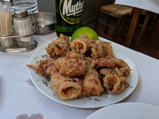 Here's the story: We went there cause at 10pm on a Sunday it was one of the very few places that was still open. But also it looked like a nice traditional Greek restaurant that even had live music. The staff was nice, at least to a level that can be expected when they want you to eat there. We ordered a large beer, a coke zero, the appetizer plate for 2 (!) persons and the kebab plate. They put a bottle of water on the table that we hadn't ordered, so we thought it's complimentary as often the case. Not here though, they charge you for it. Don't get me wrong, it's totally fine paying for what you order, but not for what I didn't order. The waiter should have at least told us upfront. First we got some bread (really nothing special and not very fresh either) and a small (!) plate with 4 different types of dips (see photo). We thought that would be the dips for the kebab plate or so, cause the kebab came soon after. We finished thinking the appetizer plate would come next, wondering though why the appetizers would be served after the main course. When nothing came for another 15min, we thought they might have forgotten it and decided to get the bill. It added up to 25,50€! The waiter told us the small plate with the dips was the appetizer plate. We were expecting a selection of appetizers from the menu (cheese, olives, meat, dips...) not just some tzatziki. Wouldn't have been a problem though, if they wouldn't charge 8€ for this. Very disappointing...