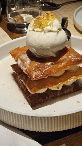 Read moreΜε το που περάσεις την είσοδο του εστιατορίου, νιώθεις αμέσως μια αίσθηση χαλάρωσης.Η ατμόσφαιρα είναι μοναδική, με απαλό φωτισμό και εξαιρετική μουσική που δημιουργούν την τέλεια ισορροπία για να απολαύσεις το γεύμα σου! Ξεκινήσαμε την βραδιά μας με κοκτέιλ, και το rum crusta ήταν μια πραγματική αποκάλυψη -απόλυτα ισορροπημένο και γεμάτο γεύση. Στη συνέχεια, τα πρώτα πιάτα μας εξέπληξαν ευχάριστα. Δοκιμάσαμε ένα ιδιαίτερο hot dog και τα dumplings γεμισμένα με σπανακόπιτα, ενώ το ψωμί που τα συνοδεύει ήταν εξαιρετικό: συνοδευόταν από ελαιόλαδο, ελιές φτιαγμένες από την κουζίνα τους,και ανθό αλατιού- μικρές λεπτομέρειες που κάνουν την διαφορά. Για κυρίως, επιλέξαμε το κοτόπουλο φούρνου με πατάτες,ένα πιάτο που πραγματικά "έλιωνε" στο στόμα, και το ψάρι ημέρας το οποίο ήταν απόλυτα φρέσκο και μαγειρεμένο στην εντέλεια. Η εμπειρία μας ολοκληρώθηκε με το γλυκό, όπου δοκιμάσαμε μια δημιουργία βασισμένη στο μανταρίνι Χίου και τη μαστίχα. Το άρωμα και η γεύση ήταν απίστευτα μοναδικά. Στο τέλος, μας πρόσφεραν λικέρ μανταρίνι, κλείνοντας την εμπειρία με τον πιο όμορφο τρόπο. Ένα μεγάλο ευχαριστώ στον προσωπικό,που ήταν εξαιρετικά ευγενικό και επαγγελματικό, και ιδιαίτερα στον σεφ Άγγελο, που μας τίμησε εξηγώντας με λεπτομέρειες τα πιάτα του. Μια εμπειρία που σίγουρα θα...