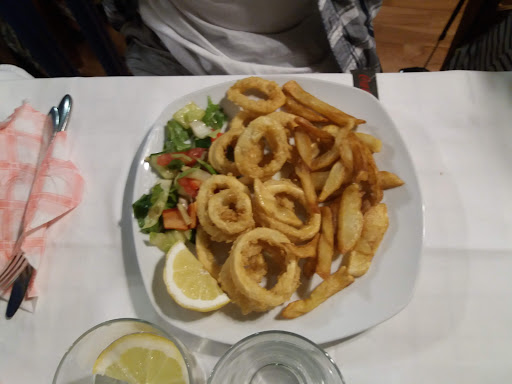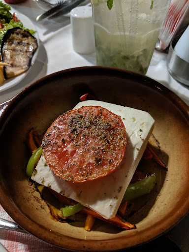 Read moreYstävällinen palvelu mutta osittain kehno ruoka. Mauttomat ylikuivat mustekalarenkaat ei mausteita ei kastiketta. Lössykät ranskikset kuin eilisiä mikrotettuja. Pihvi hyvää jänteitä kyllä oli. Grillattu feta ok ja salaatti hyvä. Grillilautanen: ylikypsä lammas sitkeä possu. Mauton. Hedelmälautanen surkeän vähäinen : 5 viipaletta heikkotasoista appelsiiniä, 5 suikaletta omenaa, 1 mansikka palasina. Thats it... Mutta talon rakia 3 dl... Ruoka siis vain kohtuullista. Parasta oli iloisuus ja lähtiessä pomon ystävällinen...