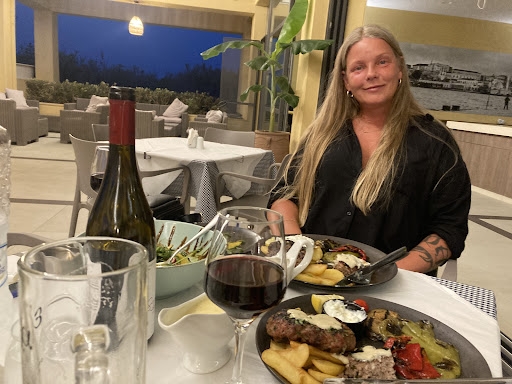 Beautiful cited restaurant by the pool and with a wiew to the seafront. After a week of delicious dishes, we got the most fantastic burger meal ever. I mean fantastic👌😎 Thanks to Janis and the rest of the crew at the restaurant and in the kitchen💪. Perfect wine recomendations from the local winery👍We...