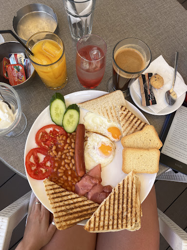 Read moreAbsolutely incredible full cooked breakfast with amazing service!! It was enormous we could of had one between us as the portion size was so incredible we ordered an english breakfast....but omg what we got was incredible.....water, freshly squeezed orange juice, coffee then the food started to arrive, greek yoghurt, bacon 2 eggs sausage mountains of toast and a toasted ham and cheese sandwich, tomatoes beans and cucumber......just when you can't eat another mouthful......out came a sweet treat of ice cream......for what we ordered and what we got...... the price was just amazing!!