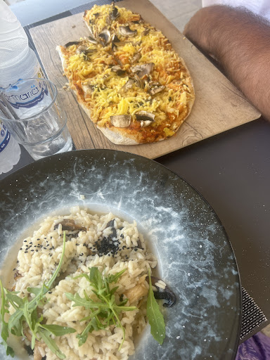 We where just passing and where hungry so we stoped on the way to have something to eat. We are vegan so this is always an adventure but we found greece to be very naturally vegan friendly. We arrived to the restaurant and noticed there where not many vegan options on the menu. However we where told they have vegan cheese for the pizza so we ordered that and they made us a vegan friendly mushroom risotto. One word: DELICIOUS! Succchhh good food! The chef is truly talented. The service is also so so nice. We had a lovely time and so glad we stoped here....