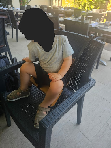 We asked for "medium rare" steaks. They came as "medium". They were tasty though, but the vegetables were also under-grilled / completely raw. The children's chicken souvlaki was very small with only 5 pieces of chicken and a mountain of fries (the chicken/fries-ratio is the opposite in other restaurants), so we had to order another children's menu item for our 2yr old. The toddler chairs are useless (detailed description under image). Do not bring small and wild children here, for your own sanity's sake. The waiter did a good job by being very attentive and friendly. The eating area lacked fans, so eating here before sundown will be a very sweaty affair. In my opinion the overall experience doesn't live up to the high prices. Don't be fooled by the "Fine dining" and "Gourmet" labels found...