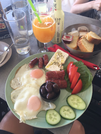 We asked the owner kindly to remove bacon and sausage from our menu (Greek menu and English menu ) cost of both 22 euros also an extra euro because the only coffee included was filter , any other coffee I should pay extra , in here everything is explained perfectly in the menu , when we asked why the extra if we are going to drop 3 things : the extra asked was 2 euro each for a slice of burgers otherwise it is turkey slices instead When our friend wrote a previous review the owner did not tell the full story and his review was a little offensive ,