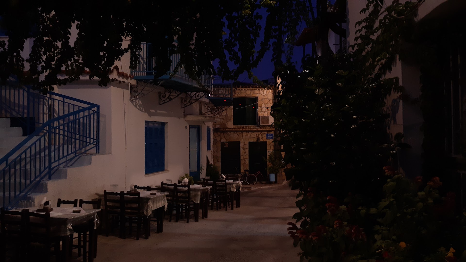 We went here on the advice of a long-time patron, and we were very pleased. We had a large group (I think we had 16 people), so we made reservations. The tavern is up on the hill overlooking the bay, just a 5-10 minute walk from the water front (most of that walk is vertical!). Personally, I loved the walk as we got to see the local neighborhood that we wouldn't have seen otherwise. The view from the tavern at sunset is gorgeous. This is a family-run tavern and they have their own butchery on-site; they were happy to show us around. There are some neat local historical photographs and paintings on the walls. Just about everyone on staff speaks English. The overall mood is happy and festive.