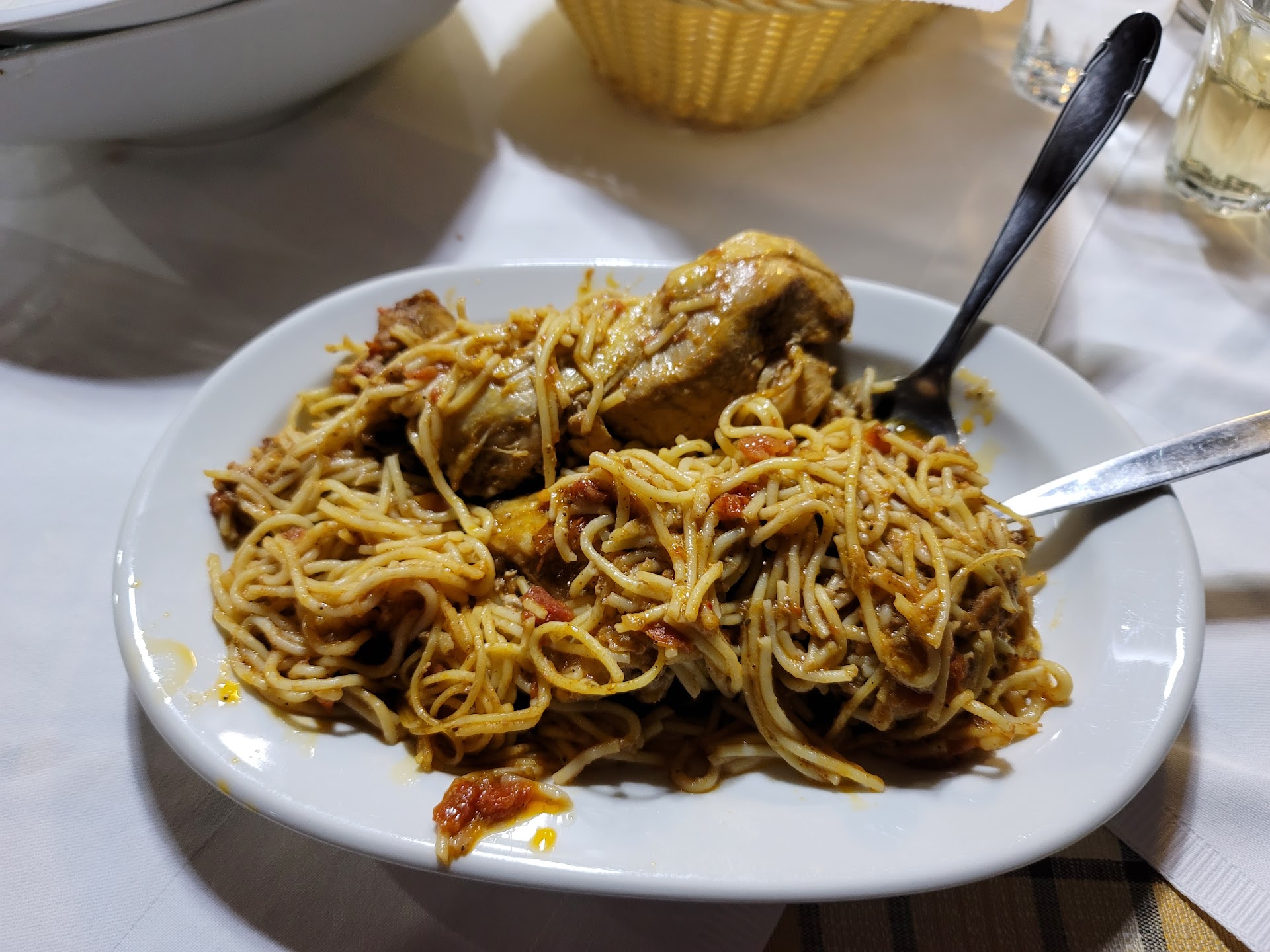 I had Greek salad (of course!), Tzatziki, pasta, and wine. They served us a small drink (digestif) after the meal. It was similar to Raki, but sweeter. Everyone in our group was complimentary of the food and service. We had a great time and if we ever visit Poros again, we'll definitely go back here.
