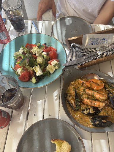 10/10 experience. The salads are delicious and fresh with the most creative yet simple dressings and ingredients. The seabream carpaccio is to die for. The tuna fillet was fresh, texture cooked to a medium rare perfection accompanied with grilled summer carrots and an interesting twist, puree de hazelnut. On to the orzo seafood dish was everything you expect and more from a delicious beach side Greek restaurant. Full of flavor, fresh mussels and shrimp. We went 3 nights in a row because once we tried this restaurant everywhere else fell short. Top this off with 7 euro 1/2 liters of crisp white wine to wash it all down.