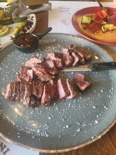 Καποια στιγμη με ρώτησαν από το μαγαζί αν θέλω να την ψήσουν κι άλλο. Αρνήθηκα, γιατί είχα ήδη χορτάσει και γιατί μόνο που μυριζα το κομμάτι που ειχε περισσέψει, μου ερχόταν αηδία. Τους ειπα πως ειναι παραπανω ροζ απ' ο,τι περιμενα. Μου απάντησαν οτι ειναι μέτρια και την ψησανε στην σωστη θερμοκρασία με με θερμόμετρο, οποτε απάντησα ότι εγώ την ήθελα μετρια προς καλη. Εκει εληξε η συζήτηση. Δεν μου προτειναν κατι άλλο, ενα κέρασμα ή εκπτωση κτλ. Το ωμό είναι θέμα γούστου, ίσως δεν ξεκαθαρισα κι εγώ τι θέλω. Πες ότι ήταν μια εμπειρία.