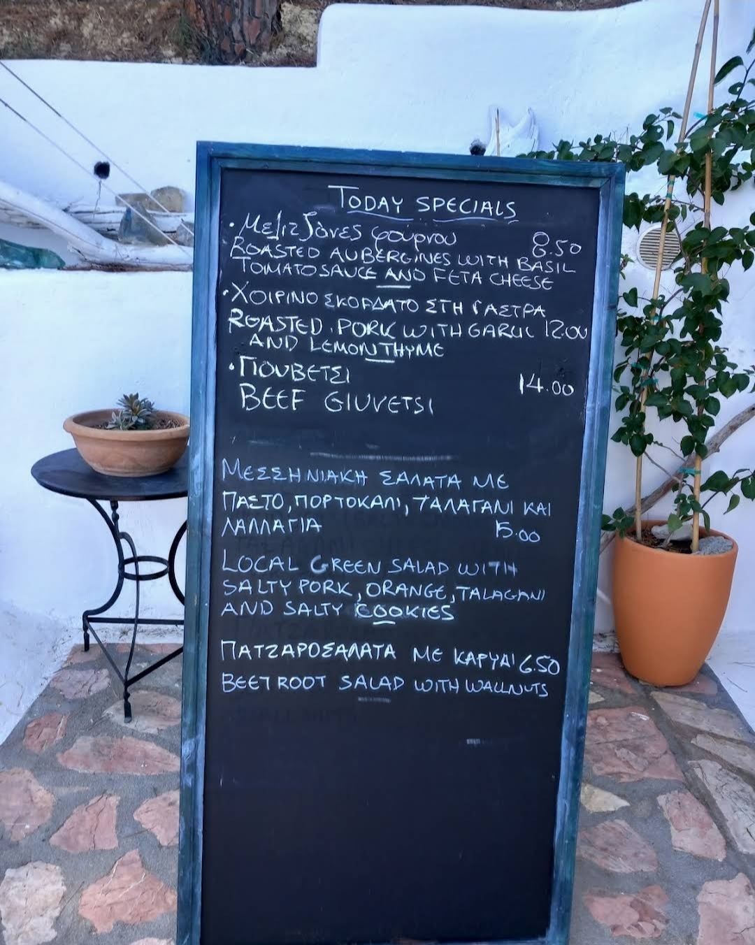 This is a beautiful little traditional restaurant in a lovely location, with stunning views over the water, looking out across to Koroni’s harbour. It could be incredible.