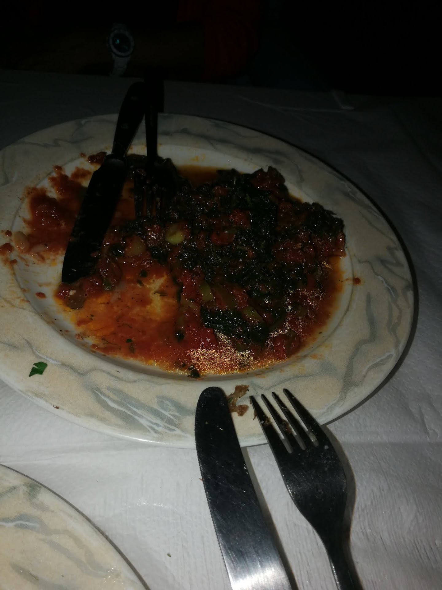 We were disappointed that there didn’t seem to be any local fresh fish options and both went with the cod from the specials menu, a Greek salad and some wine.