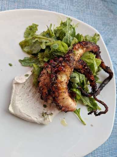 Some of the dishes were delicious like the white fish roe salad, the grilled shrimps, the talagani with the marmalade and fava beans that assorted the octopus. The octopus was highly recommended by the most senior member of the staff and since it was relatively expensive I thought it would have been fresh and worth to have. Unfortunately it was pre-boiled with lots of vinegar as it was actually frozen. Bad choice and unhappy being directed to have the most expensive dish on the menu. This is an attitude of a a touristy restaurant that I wasn't expecting from this one. But I think the most disturbing was that when I visited in person in the afternoon to arrange for a dinner table the same senior member of the staff was totally inflexible and unhappy to give me the table I requested claiming that it would be a very busy night and he didn't want to block this. Like I wouldn't pay for it or I wasn't worth it. He insisted on having a small table next to the car park. After an unnecessary negotiation he accepted the customer's request! Overall a good restaurant that puts its reputation in risk because of...