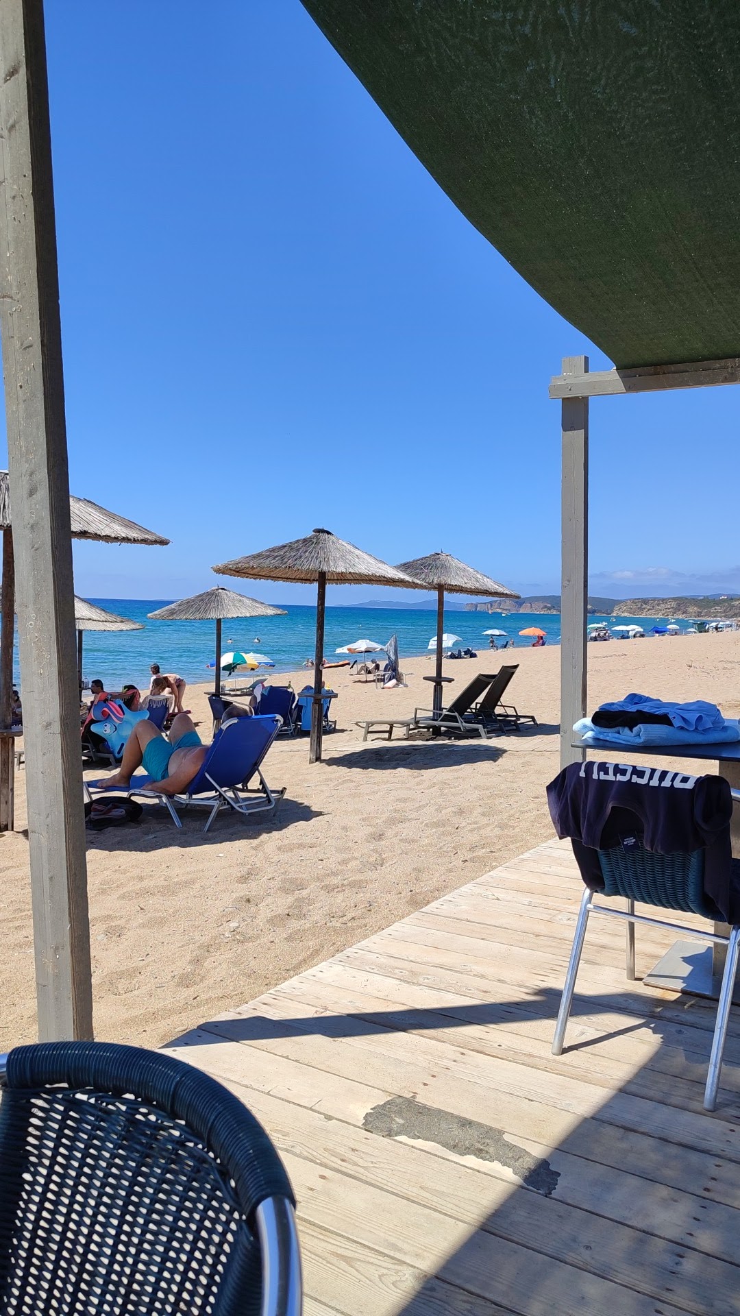 Σε μια εξαιρετική και μακριά παραλία χωρίς πολύ κόσμο και μπιτσόμπαρα καθίσαμε για μπάνιο στις ξαπλώστρες που δεν είχαν χρέωση (μόνο κατανάλωση) ένα μεσημέρι καθημερινής με λίγο κόσμο. Έρχεται η κοπέλα για παραγγελία κ επειδή ζητήσαμε παγωτό μας εξήγησε ότι το παγωτό πρέπει να το πάρουμε και να το πληρώσουμε στο μαγαζί. Τα υπόλοιπα (χυμούς καφέδες κλπ) θα τα πληρώναμε σε αυτήν όταν τα έφερνε στην ομπρέλα αλλά μόνο μετρητά. Για Pos είχαν κάνει αίτηση γιατί άνοιξαν πρόσφατα και δεν είχε έρθει ακόμα. Πάω μέσα στο μαγαζί διαλέγω παγωτό και στο ταμείο μόλις έδωσα 50ευρω μου λέει η κυρία ότι θα το πληρώσω στην κοπέλα όταν φέρει την υπόλοιπη παραγγελία. Έτσι και έγινε. Ήρθε η κοπέλα με την υπόλοιπη παραγγελία κ πληρώθηκε όλα μαζί και το παγωτό. Κάποια στιγμή όταν αναρωτήθηκα γιατί να σηκωθώ να πάω στο μαγαζί είπε ότι είναι δύο διαφορετικά ταμεία που στην δική μας περίπτωση έγιναν ένα κ τους ευχαριστώ. Αργότερα θέλαμε να παραγγείλουμε κάτι ακόμα και αφού επί μισή ώρα με το ρολόι δεν εμφανιζόταν κοπέλα ενώ είχαν πόστο (τραπέζι με καρέκλες) στις ομπρέλες πήρα τηλέφωνο στο νούμερο που είχε στο google για να παραγγείλω τηλεφωνικά και το σήκωσε κάποιος που είχε πέρσι την επιχείρηση. Ζήτησα συγνώμη και σηκώθηκα πάλι κ πήγα στο μαγαζί γιατί ανησύχησα για την υγεία της. Ησύχασα όταν την είδα να μιλάει με την κυρία στο μπαρ. Ρώτησα μήπως σχόλασε και όταν με βεβαίωσε ότι ακόμα δουλεύει έδωσα την παραγγελία μου αλλά ζήτησα στο χυμό να μην έχει κουκούτσια από καρπούζι γιατί στον προηγούμενο μπλόκαραν το καλαμάκι Ήρθαν χωρίς κουκούτσια και ήταν πραγματικά εξαιρετικό αλλά η μπύρα ήρθε άλλη μάρκα από ότι ζητήσαμε. Όλα με απόδειξη με μικρό αύξοντα αριθμό που σημάνει ότι όντως άνοιξαν πρόσφατα και φαίνεται στην οργάνωση ότι δεν έχει "δέσει η...