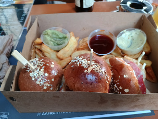 Read moreΕξαιρετικό μαγαζί με πολύ ωραία ατμόσφαιρα και το προσωπικό άριστο! Καθήσαμε τυχαία και πραγματικά μείναμε έκπληκτοι! Παραγγείλαμε έξι μπέργκερ. Πέντε cheeseburger και ένα chicken burger. Το μπιφτέκι ήταν χειροποίητο και τα υλικά ολόφρεσκα. Οι πατάτες ιδιαίτερες και όχι προτηγανισμένες. Το ψωμάκι αφράτο και ζεστό. Όλα τα μπέργκερ ήταν τοποθετημένα σε χάρτινα δισκάκια και τα μαχαιροπίρουνα μιας χρήσεως σε χάρτινο κουτάκι. Ο χώρος ήταν υπέροχα διακοσμημένος, όπως και το μαγαζί βρισκόταν σε ένα κεντρικό σημείο. Αξίζει να το επισκεφθείτε καθώς για το καταπληκτικό φαγητό του αλλά και για τον...